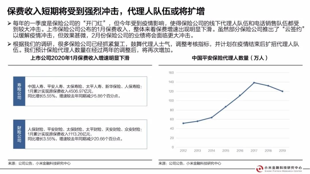 - 保费收入短期将受到强烈冲击,代理人队伍或将扩增