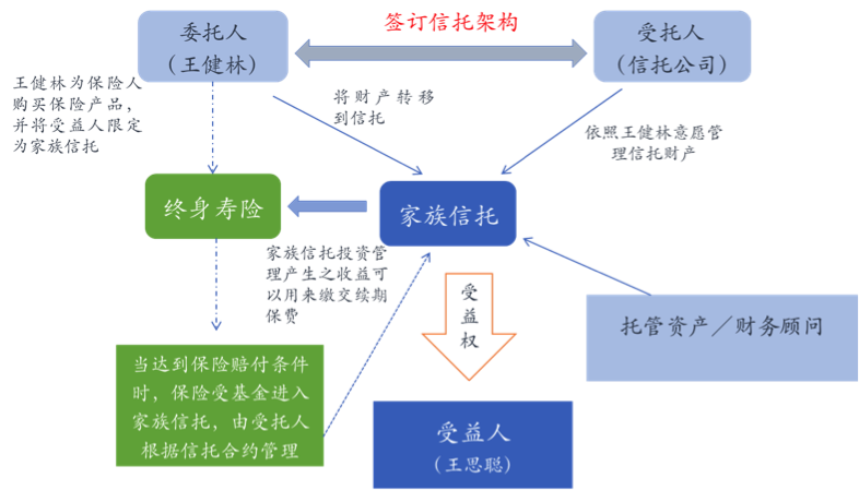 王健林正值事业上的壮年,万达集团的交接班问题并不迫切。婚姻上,王健林和林宁夫妻没有传出婚姻不和的消息。但是王思聪的婚姻将会是一个很大的变数,因此考虑为王思聪设立一份婚前隔离信托或婚前保护信托。