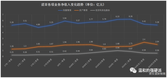 观察诺亚最近三年的财务报表,可以清晰的看到从整体上诺亚已经很难实现快速的增长了。从收入的细节来看,资产管理(歌斐)贡献的收入,无论是绝对值还是占比都在不断提升。