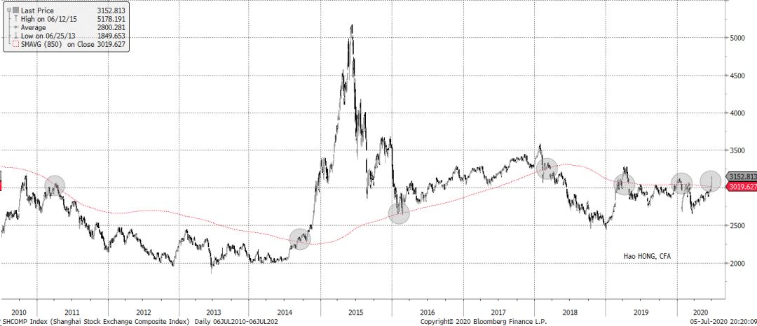 图表1:上证综合指数已突破850天移动均线。
