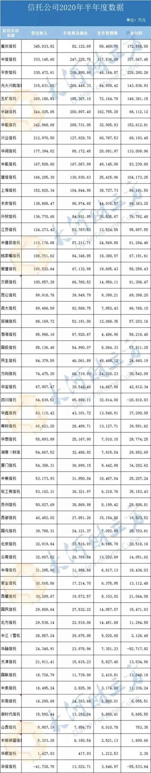 在此背景下,2020年上半年信托公司中期业绩如何?