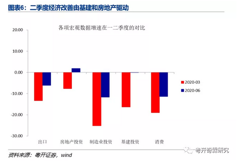 今年上半年,信用环境非常宽松,社融增速已经超过12%,首套房贷利率也出现了25BP的下降,对房地产销售和投资改善非常有利,所以房地产在疫情过后修复的非常快。