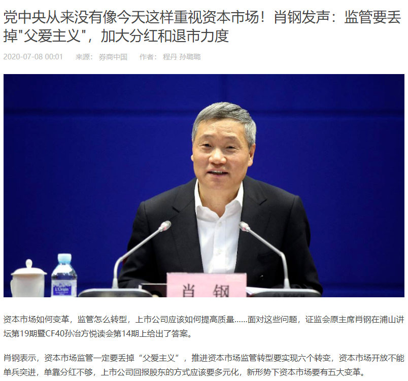 在7月初中国股市刚现牛市苗头时,前证监会主席肖钢就表示“我国从来没有像现在这样重视资本市场”,这句话的含金量站在这个全局背景下是不是另有一番味道?