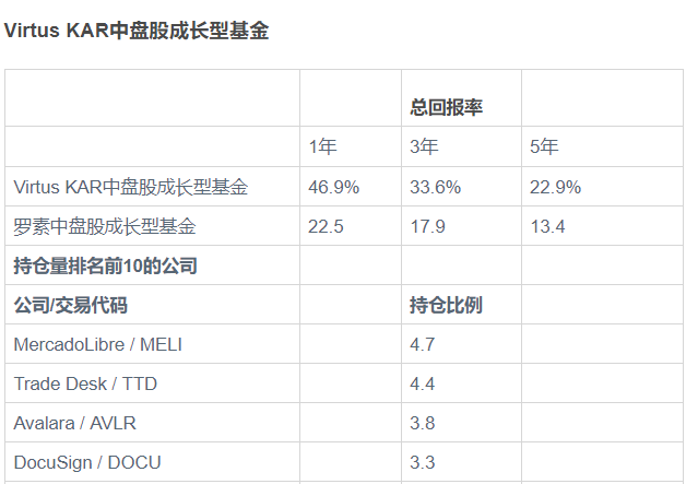 “我想我的决定是正确的,”福尔曼说。他自2012年开始接手Virtus KAR中盘股成长基金(PHSKX)的管理,这只规模为22亿美元的基金在每个阶段的1年、3年或5年期的表现都超过了晨星(Morningstar)相关基金类别下的其他基金。