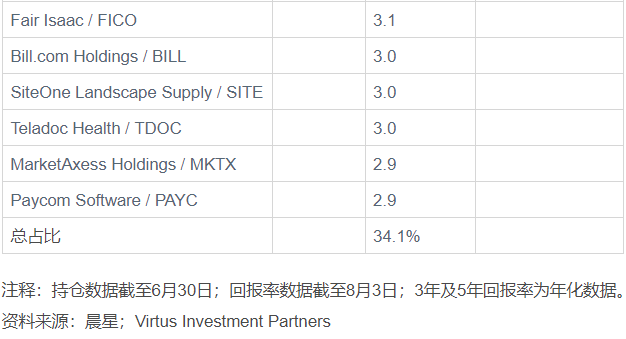 在过去五年里,这只基金的年平均回报率为22.9%,表现好于99%的同类中盘股成长型基金。截至8月3日收盘,今年该基金累计上涨了41%,主要原因是该基金持股量最大的一些公司受益于疫情下一些趋势的加快,比如云计算、远程医疗和达美乐披萨(DPZ)外卖服务等。相比之下,标普500指数同期涨幅仅为2%,标普中盘股400指数则下跌8.7%。