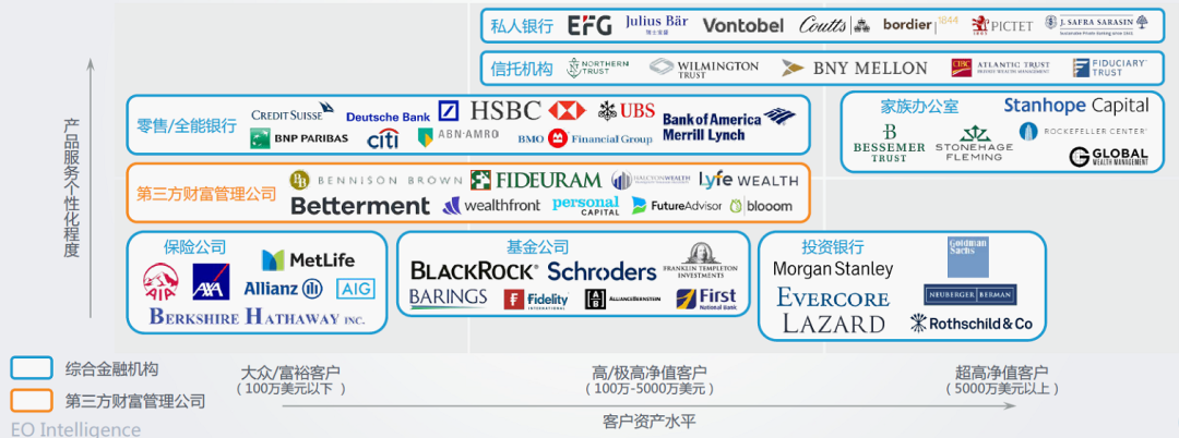 美国通过了《金融服务现代化法案》,重新允许商业银行与投资银行业务混业经营。再加上财富管理行业增长快、收益高,因此参与机构的数量和范围不断扩大。2010年