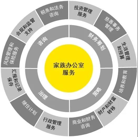 ► 二是提供的服务内容,家办是为家族传承服务的,除了根据家族的意愿进行投资理财之外,还应该根据家族的特色考虑传承家族价值观、家族治理、下一代培养、慈善安排等。