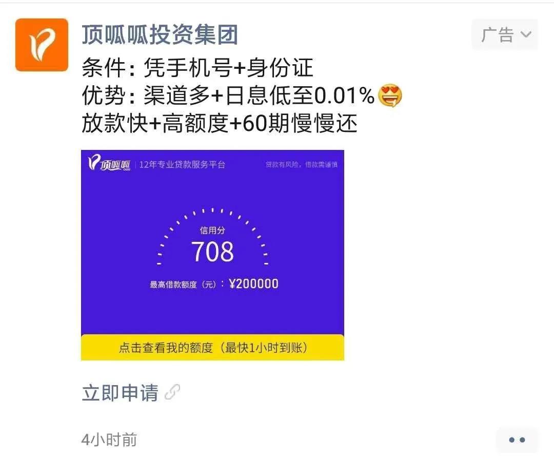 今年4月,林毅曾在社交网络里发现“某某金服”投放的贷款广告。