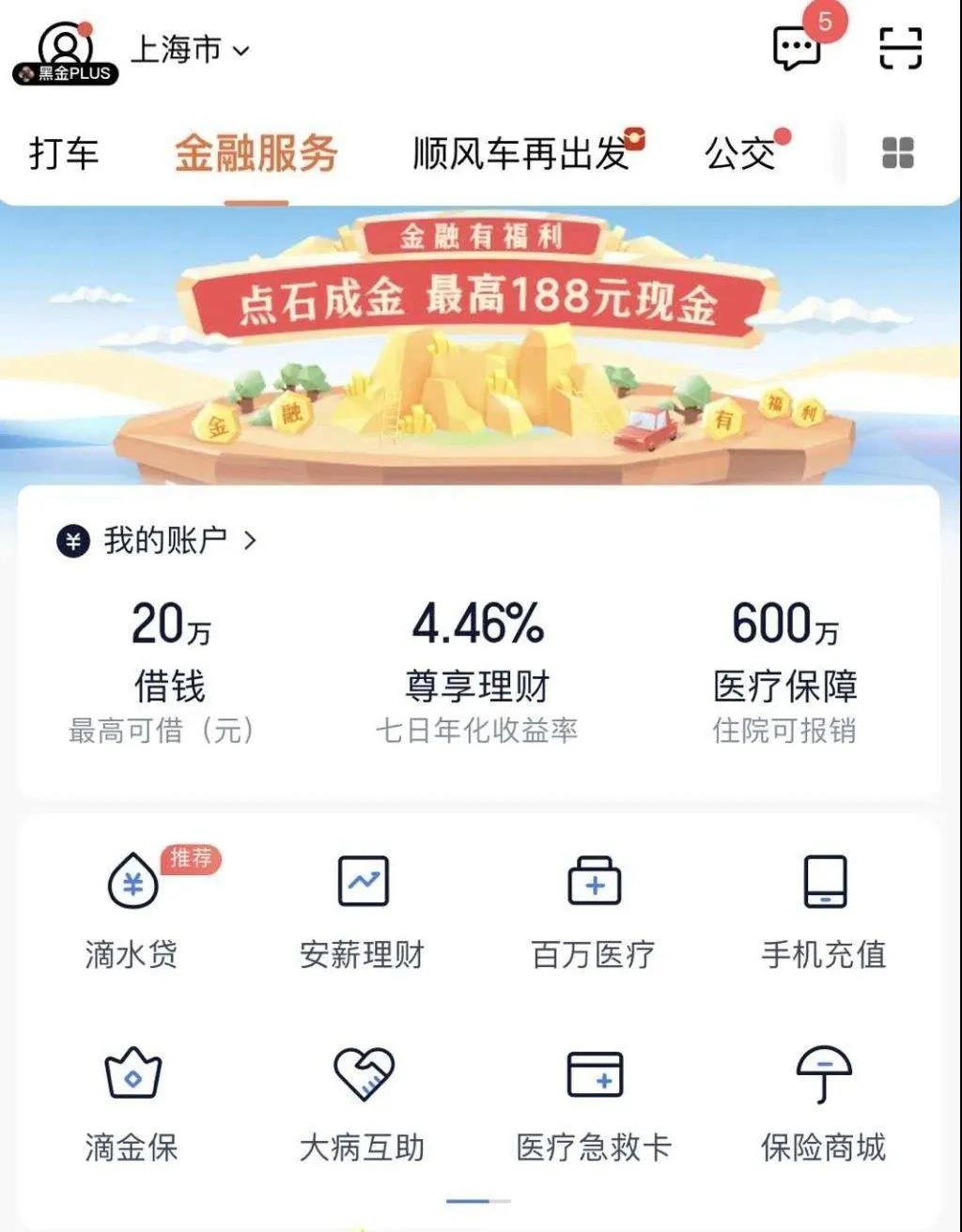 在他的滴滴APP中,“金融服务”一栏,已被滴滴排在了第二位,仅次于“打车”选项,可见滴滴对于金融业务的重视程度。