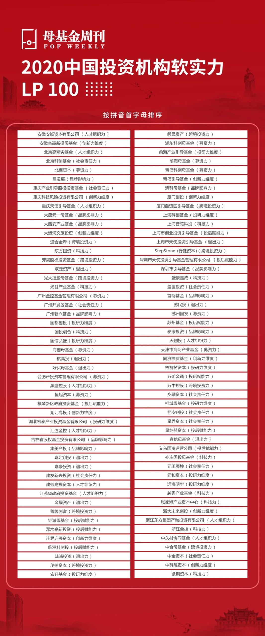 会后,《母基金周刊》发布了中国投资机构软实力100榜单,以表彰投资机构软实力先行者的实践。