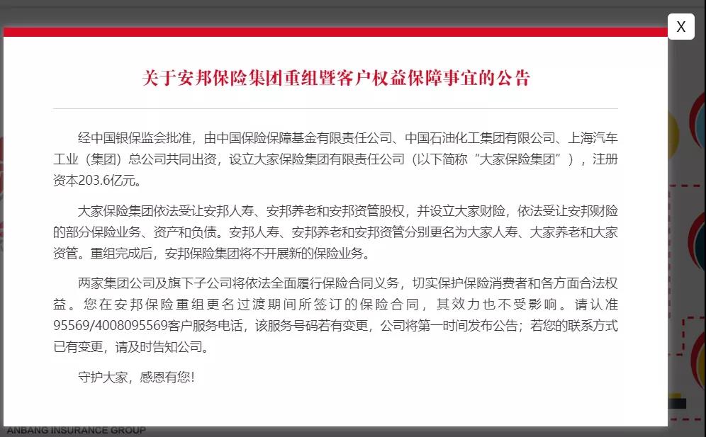 划重点: “您在安邦保险重组更名过渡期间所签订的保险合同,其效力也不受影响”