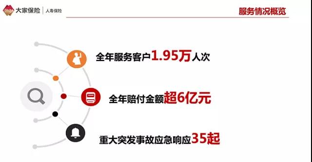 大家人寿2019的全年赔付金额超过6亿元,全年服务客户1.95万人次。