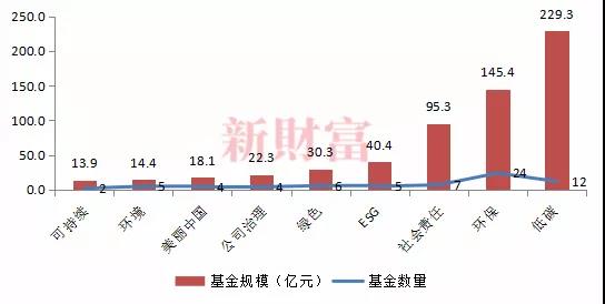据新财富统计,全市场的公募基金中,名称包含ESG、社会责任、绿色、低碳、可持续、美丽中国、公司治理、环境、环保等关键词的产品共有77只,总资产规模为609.4亿元。据中国证券投资基金业协会数据,截至2020年5月末,公募基金资产规模已超过17万亿元。以此计算,ESG相关主题公募基金产品占比约为0.36%,规模尚小。