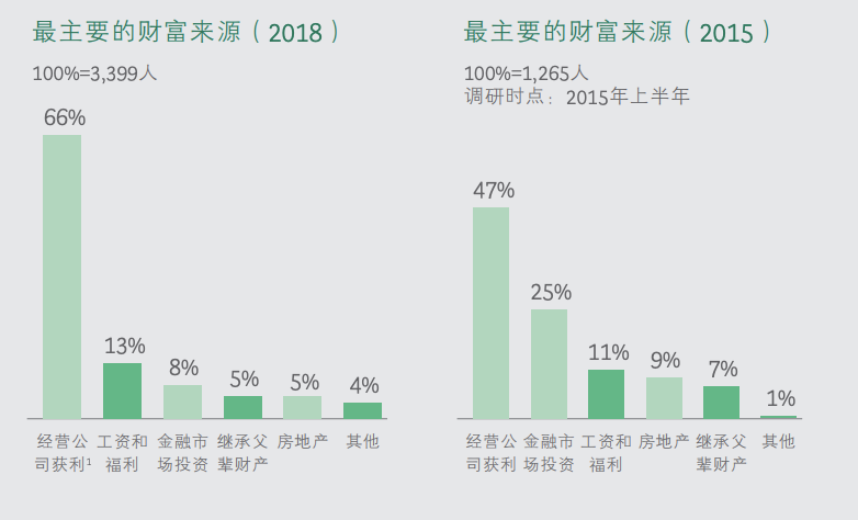 另一方面,对高净值人群而言,他们投资的方向在发生趋势性的改变。我国高净值人群很大一部分为企业家,根据《中国私人银行2019》的研究,在经历了股市跌宕起伏、房价高温渐退后,回归实业经营仍是主线,高净值客户群体中,主要财富来源仍是经营企业获利,且通过经营企业分红或是企业股权变现的财富积累的主导地位愈发明显。