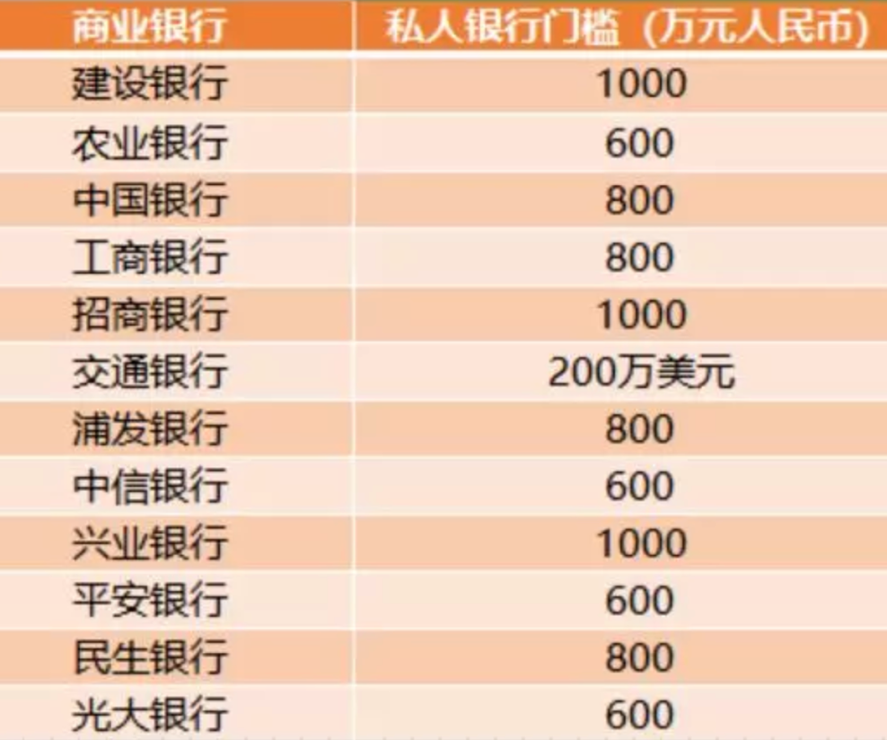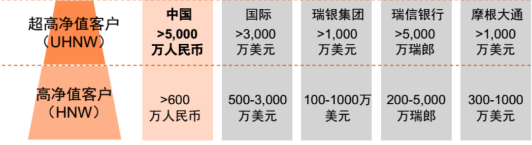 - 私人银行客户:金融净资产达到600万元人民币及以上的商业银行客户。