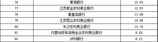 - 区域性银行排名前十五的分别是江苏银行、南京银行、苏州银行、宁波银行、北京银行、晋商银行、上海农商银行、中原银行、上海银行、广州银行(并列第九)、贵阳银行(并列第九)、江苏江南农商银行、广州农商银行、重庆农商银行、东莞银行和齐鲁银行(并列第十五)。