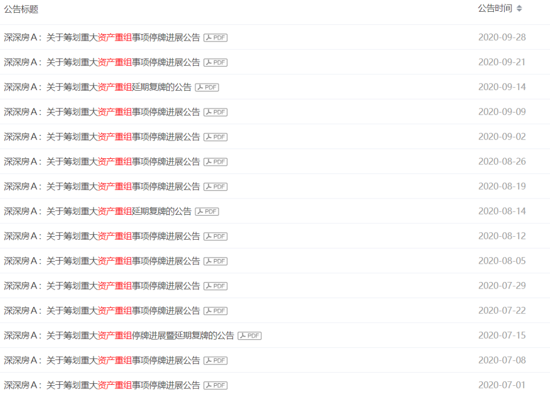 深深房在9月27日发布公告称,“由于重大资产重组涉及深圳市国有企业改革,交易结构较为复杂,属于重大无先例事项,重组方案还需进一步沟通与论证。”