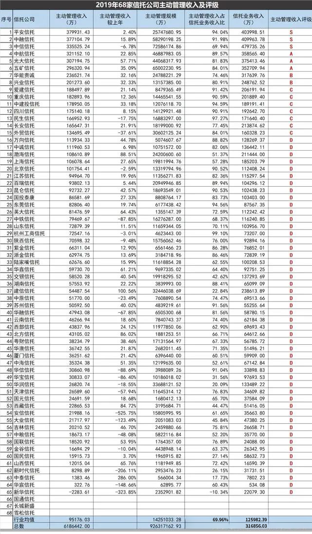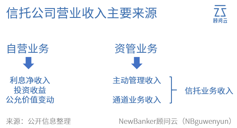 所谓资管业务收入包括主动管理收入和通道业务收入,其中主动管理收入是体现信托公司实力最重要的指标。