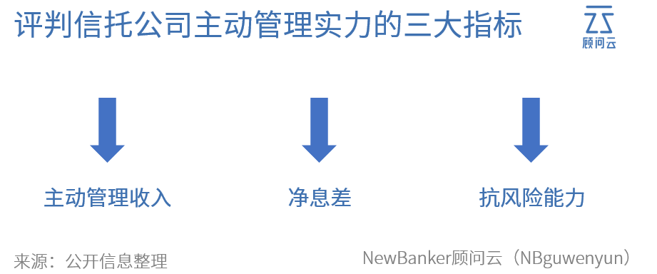 评判一家信托公司的主动管理实力,可以从主动管理收入、净息差、抗风险能力三个指标来衡量。