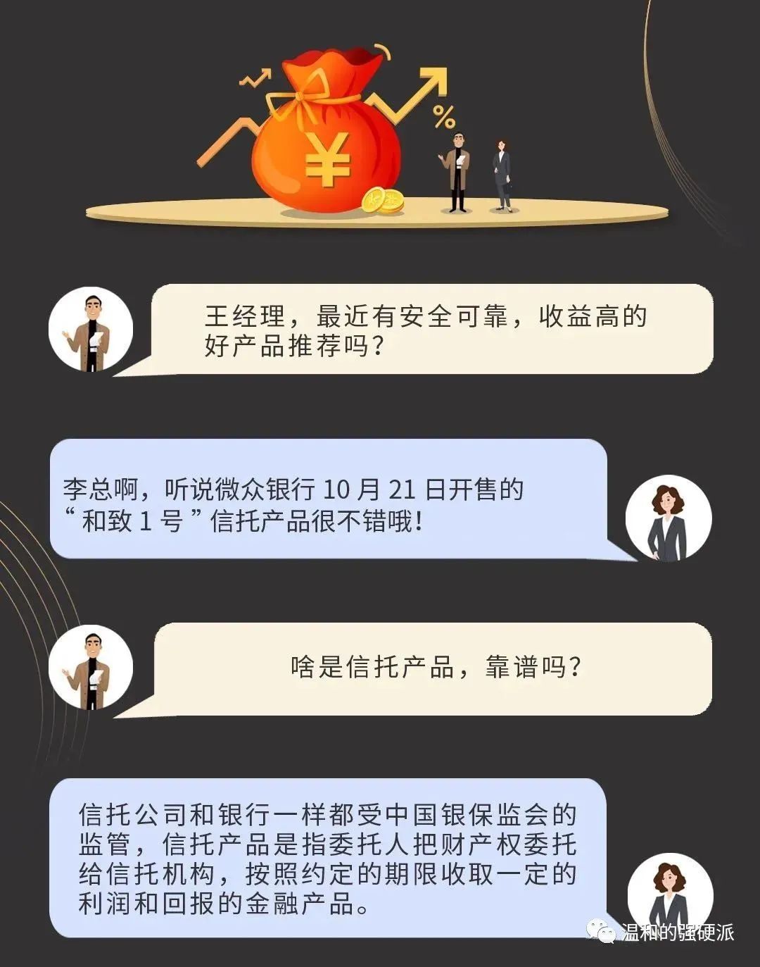 但相比于包装出来的“高级感”,我觉得在业务内核上多思考,把业务前后的“高级感”都找出来并落地,才是真正的表里如一,就如同前文同微众银行合作的案例一样,既打出了品牌,又借助这个事件把信托在资产和财富的基础客群扩大,才是信托公司未来业务发展的当务之急。