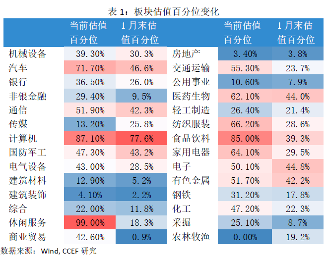 二、 从估值水平看各板块的投资机会和风险