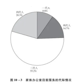 目前,国内家族办公室服务的客户主要以第一代财富创造者为主,平均年龄为51岁,64%的客户为男性,76%的客户目前仍然在运营着企业,基本上整体客群同时也是其他金融机构的客户。而在家族代际结构方面,主要以三代家庭为主(见图10-3)。