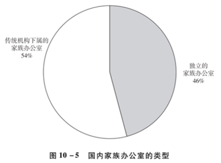 目前国内家族办公室整体上处于初级阶段,可供研究的样本较少,从分类上来看,传统机构下属的家族办公室与独立的家族办公室为目前运作中的主流形式(见图10-5)。金融机构下属的家族办公室,主要集中于信托机构或商业银行,其主要原因在于家族信托业务的开展,与家族及高净值家庭相关程度较高的私人银行及卷商财富管理部门也是主力。除此之外,家族办公室核心人员主要来自信托机构,其次来自于银行或律师团队。
