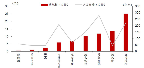 近几年,随着绿色金融的蓬勃兴起和ESG投资理念的快速传播,越来越多的中国资管机构开始采纳ESG投资策略。自兴全基金于2008年成为第一家,截至2020年10月,中国已有13家公募基金管理人签署联合国负责任投资原则的公募基金。众多大型基金管理公司相继推出以ESG为主题的基金产品,使得国内ESG主题基金市场也已初具规模。目前中国市场已有约100只ESG概念类公募基金,基金净值规模超过1000亿元人民币。