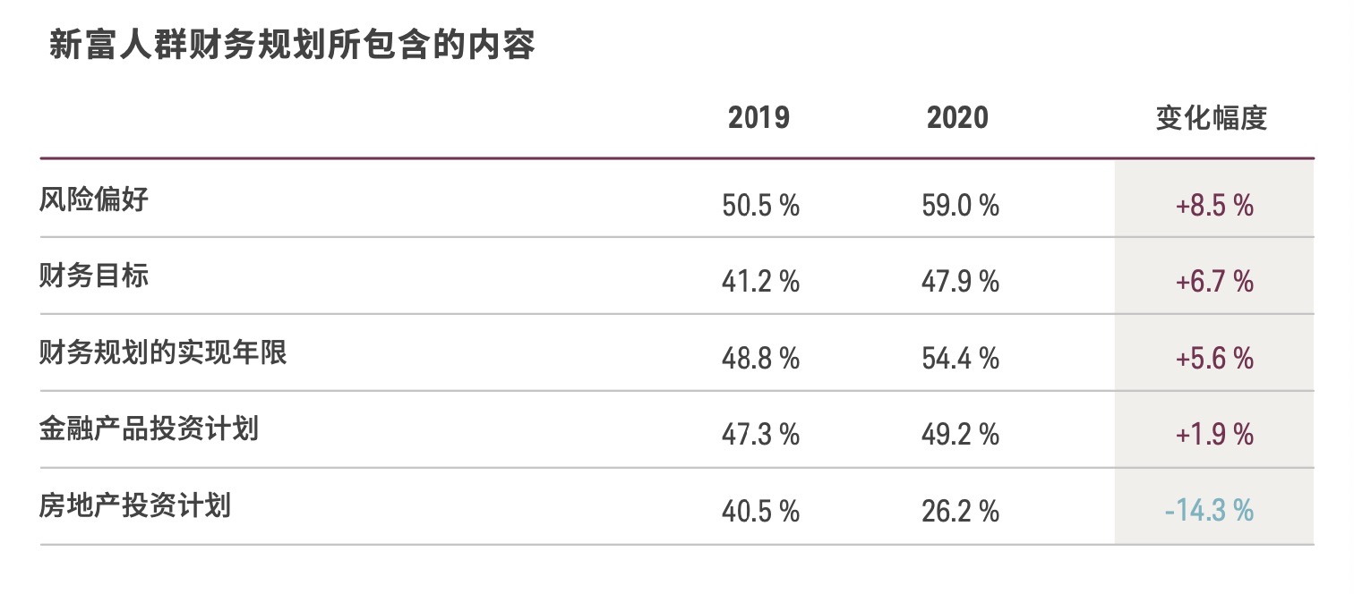 此次调研显示,在新冠肺炎疫情的影响下,中国各个年龄段的新富人群都比以往更注重财务规划。