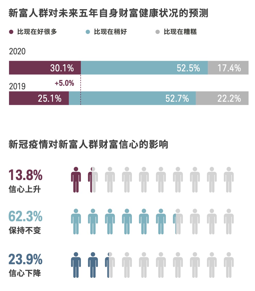 2020年,尽管市场遭受新冠疫情的冲击,中国新富人群财富健康状况仍然实现了全面提升。