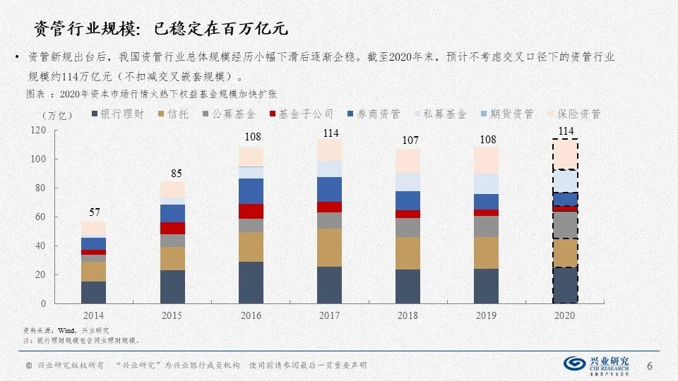 按照资管新规要求,2021年包括我国银行理财/信托在内的资管机构运作将从过去资金池转向净值型模式。当下中国资管行业也处于跃然再起的阶段,这体现在: