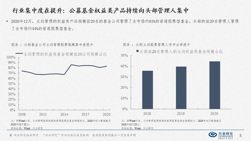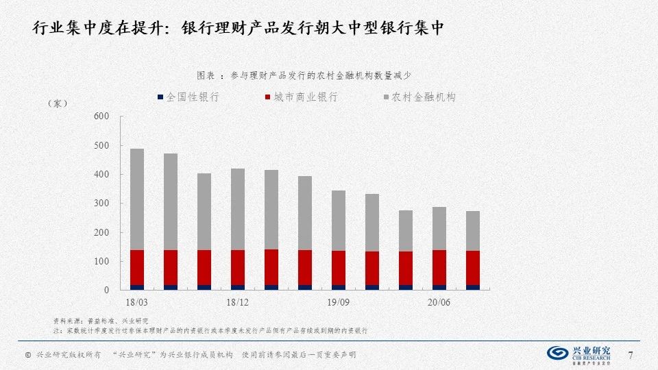 (2)行业集中度提升,头部化显著:银行理财:以农商行为主的中小银行正退出理财市场,国有大行/股份行份额提升;公募基金:权益类爆款频出,“头部机构+明星管理人”占尽优势;个别信托机构因出现风险事件而被接管;