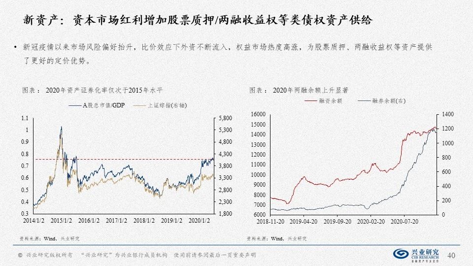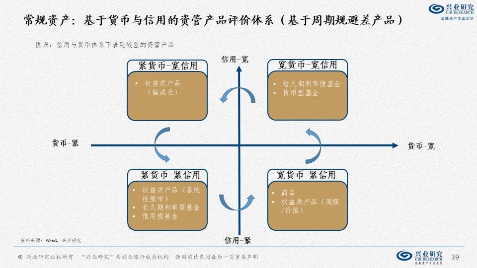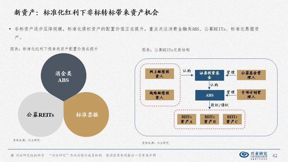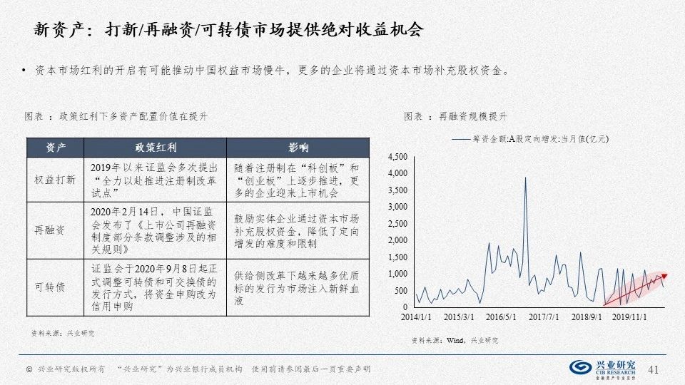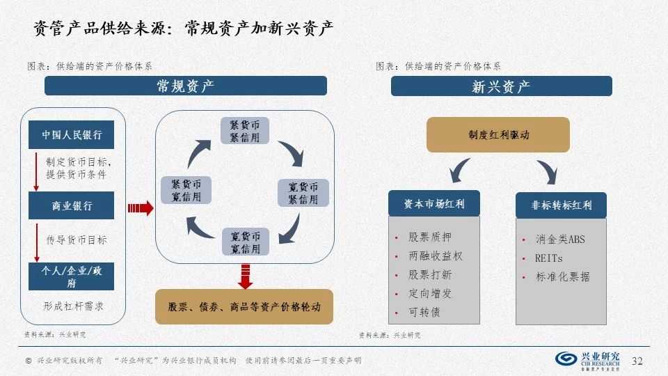 资产供给侧两条主线:一是基于货币/信用轮动体系关注权益/债券/商品等标准化资产的吸引力,本文构建了相关产品的轮动体系;二是基于发展资本市场(如打新/转债/定增)、非标转标(如消费金融ABS)等政策红利带来的新资产机会,未来如公募REITS/标准化票据等资产仍在破局。