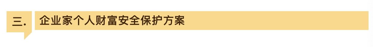 企业家作为企业、家族的领袖,一旦他们出现身故风险、失能风险、其他紧急风险等情况,则往往会出现“牵一发而动全身”的情况。轻则企业停摆、家庭失和,重则企业倒闭、家破人亡。相信任何一个企业家都不愿意面对这样的结局。因此,企业家应当在自己身体健康、家庭幸福、企业运行稳健时及时考虑个人财富安全的保护方案,通过各种规划方案进行提前的预防,不要等到“山雨欲来风满楼”时才感叹“为时已晚”!