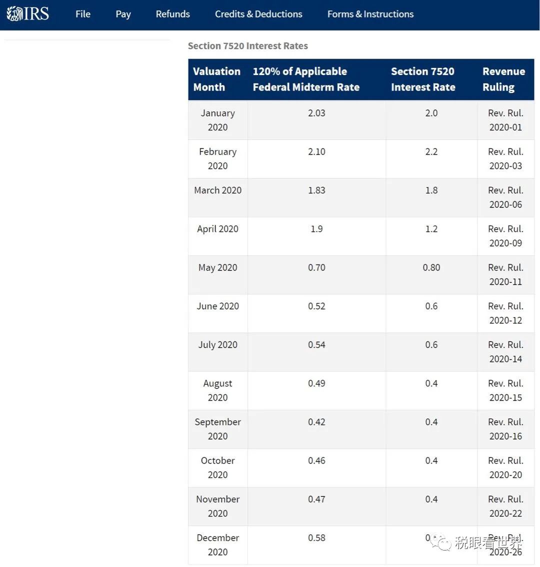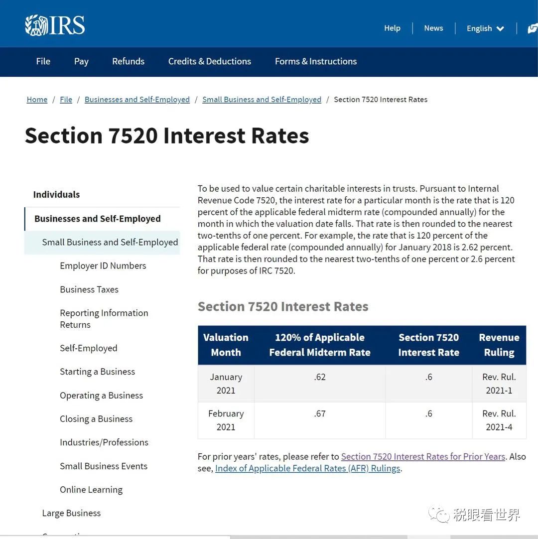 今天美国国税局IRS 公布2021年2月税法条款7520联邦指数利率AFR 。