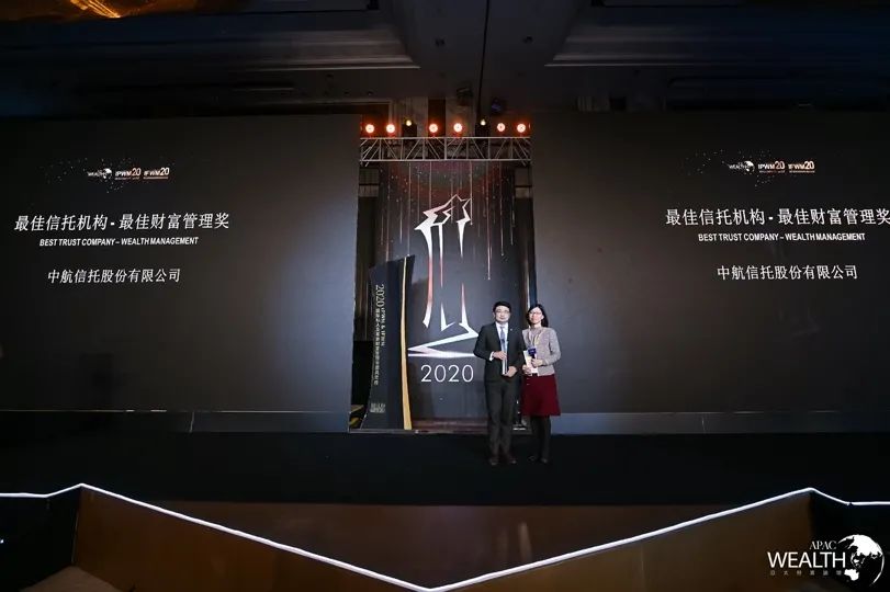 第五届亚太财富论坛暨2020年度国际私人及家族财富管理颁奖盛典,于2021年01月16日在上海万达瑞华酒店隆重召开。中航信托受邀出席,并荣膺金臻奖“2020最佳信托机构-最佳财富管理奖”。中航信托党委委员、副总经理范华凭借其在财富管理领域里展现的优秀领导力荣获金臻奖2020年度杰出领袖人物奖。