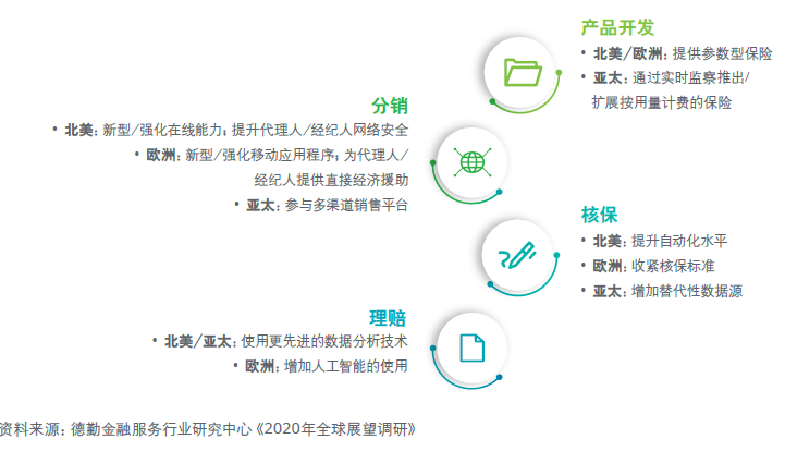3. 加速数字化进程和增强虚拟化运营能力的需求,促使许多保险公司化危机为转机,加快推进各项转型举措,力争在未来一年完成原本需要三至五年才能完成的计划目标。