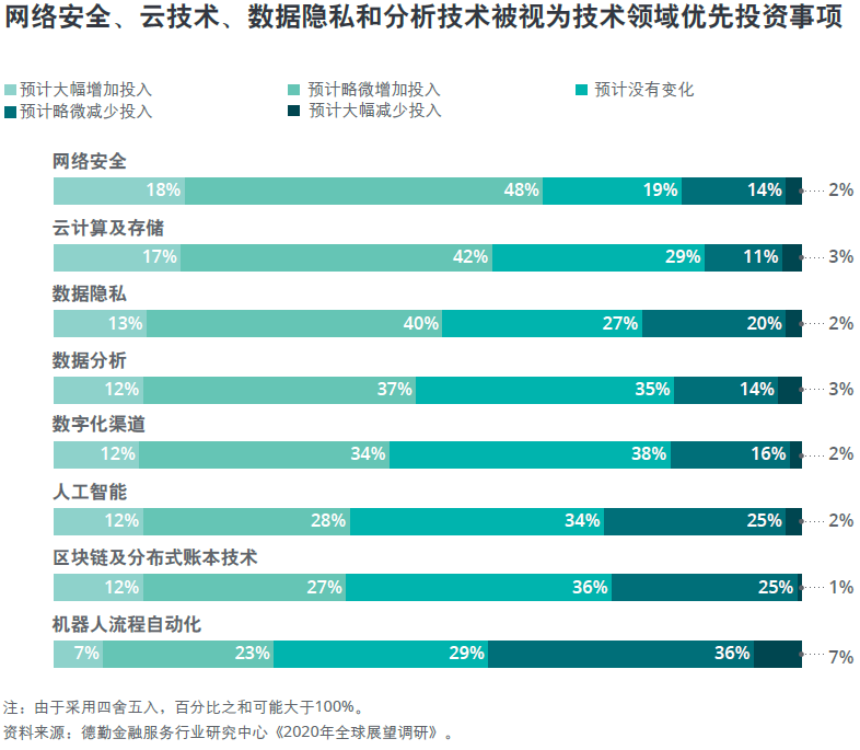 随着保险公司逐步迈向全面反弹阶段,大部分受访首席信息官表示在重新调整已进行和已计划项目的优先次序时,将会重新分配技术方面的投入。在预计扩大投入方面,网络安全是受访者的首选事项。同时随着数据相关法规和对网络安全问题的担忧与日俱增,隐私成为保险公司董事会层面日益关注的重点要务。