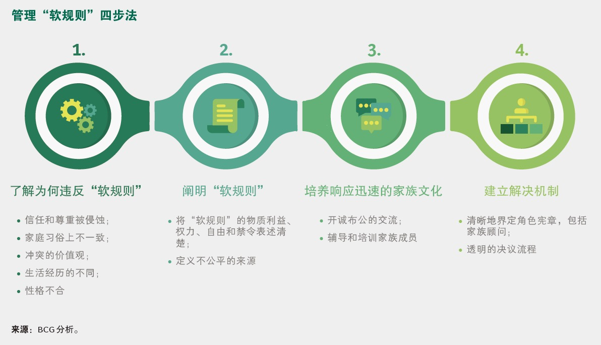 以下四步可以帮助家族企业有效理解和管理其“软规则”。