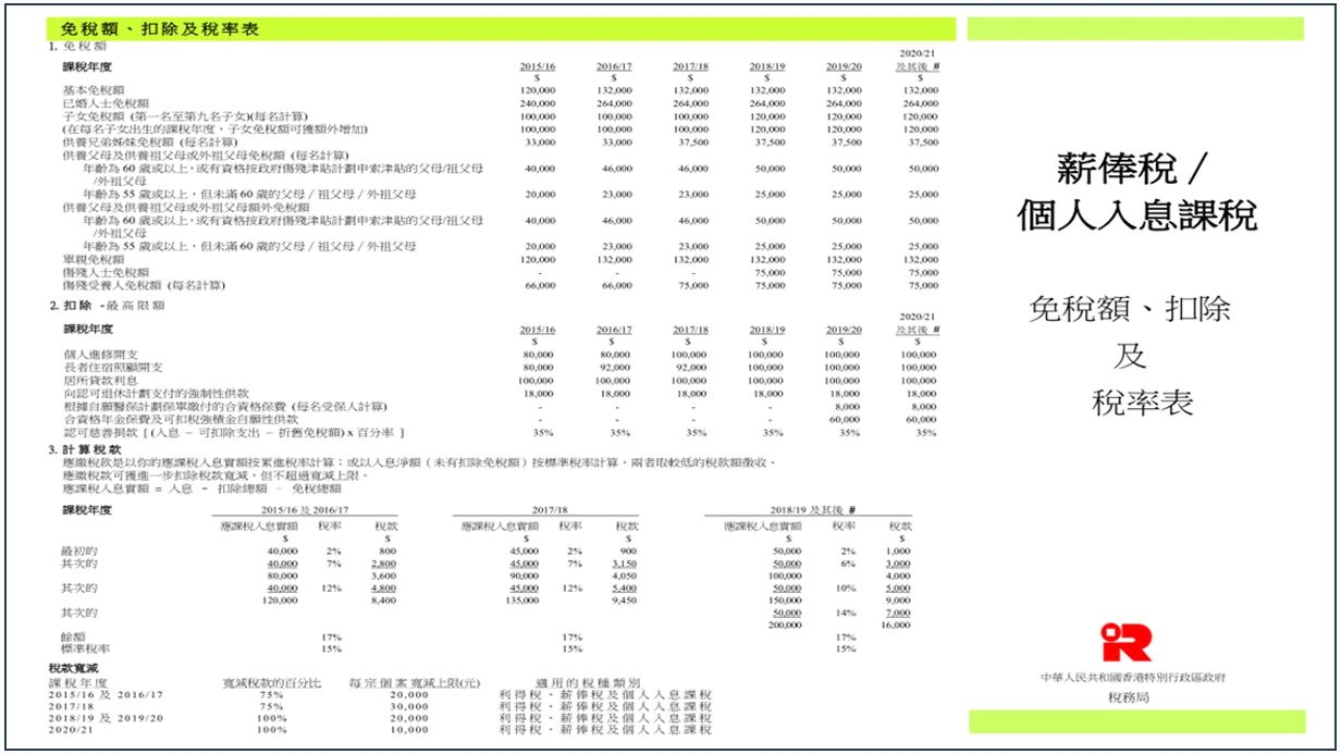 (3)香港的税务宽免政策:最新的宽免政策是宽减2020/2021课税年度百分之百的薪俸税、个人入息课税及利得税,每宗个案以港币10,000元为上限。
