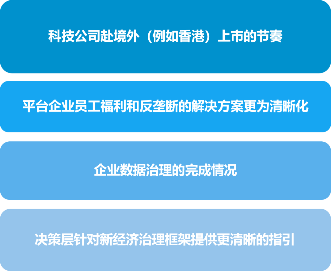 在近年来的市场治理行动中,相关部门正逐步提供更清晰的指引。比如8月11日中共中央、国务院印发的《法治政府建设实施纲要2021-2025年》提出,通过理顺部门职责关系、权责协同、加强与立法的程序匹配,同时注重政策咨询、公共意见收集。日前举办的中小企业高峰论坛上提到的“统筹发展与安全的关系,目的是保护公平竞争,促进资本健康有序发展”。下一步,后续市场将高度关注:1.企业数据治理的完成情况;2.科技公司赴境外(例如中国香港)上市的节奏;3.平台企业员工福利和反垄断的解决方案是否更为清晰化。