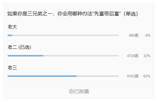 这里做个问卷调查,如果你是三兄弟之一,你会用哪种办法“先富带后富”:
