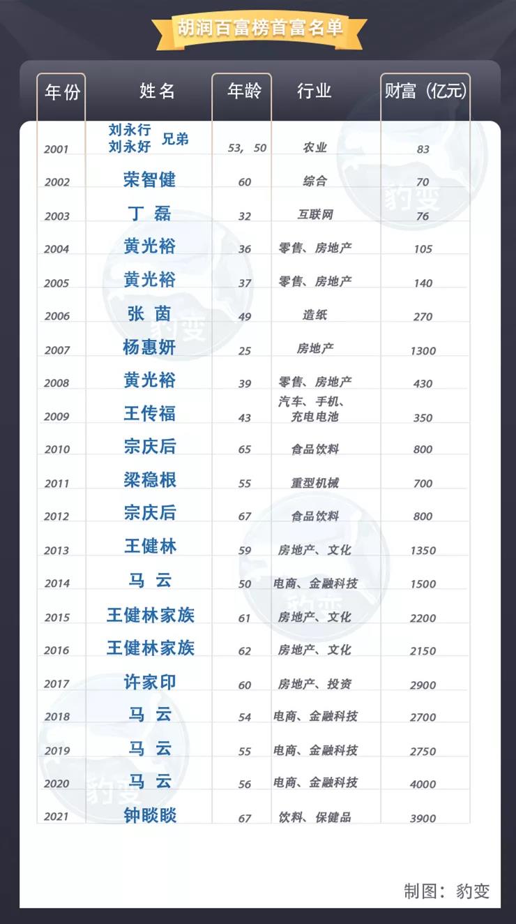 2021年,农夫山泉的钟睒睒登顶首富,让首富在兜了一大圈后再次回到了实业。