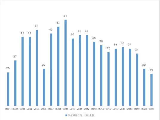 此后,随着国家加强房地产调控,登上百富榜的房企富豪数开始持续下滑。2016、2017年出现过短暂反弹,但之后各地加强楼市调控、坚决贯彻“房住不炒”的理念,上榜房企富豪数量便一路下滑,到2021年仅剩19人次,是房地产“黄金时代”逐渐谢幕的直观注脚。