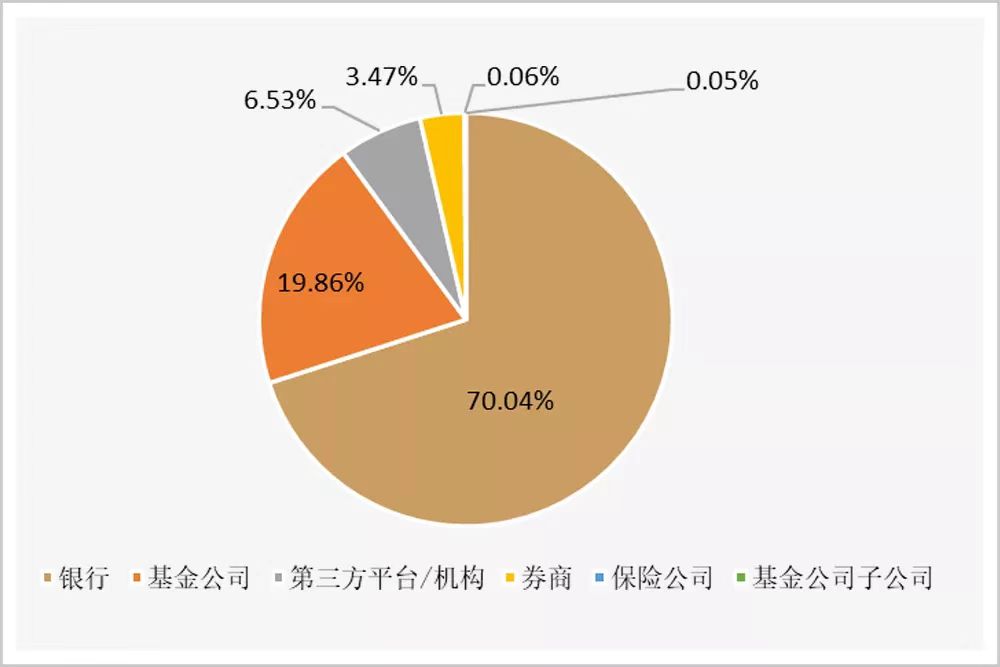 在普惠型财富管理推而广之的未来,相关产品的销售格局也将迎来变革。之所以“普惠”与“财富管理”这两个词看似距离十万八千里,是因为目前财富管理资源主要倾斜于高净值客户,与投顾成本息息相关。财富管理服务中,高品质的一对一“人肉”投顾模式,只有在服务高净值客户时才可以覆盖成本,因无法实现规模效应,注定无法照顾到最普通的投资者。可以想见,无论是数字化转型后的银行、券商,还是互联网基因中生长的互联网三方销售平台,能运用金融科技手段适应普惠型理财的销售机构,将成为最终的胜利者。从银行理财和公募基金这两类主流普惠型财富管理产品在不同销售渠道的存续规模分布来看,银行渠道占据绝对主导地位,约占70%,基金公司约占20%,独立基金销售机构和券商的市场份额占有量分别为6.53%和3.47%;从排名前15大销售主体来看,基本上也全部是商业银行。