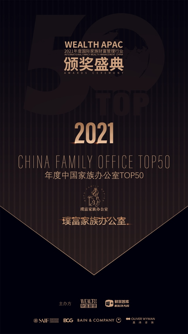 璞富家族办公室荣获2021年度薪火奖之“中国家族办公室TOP50”