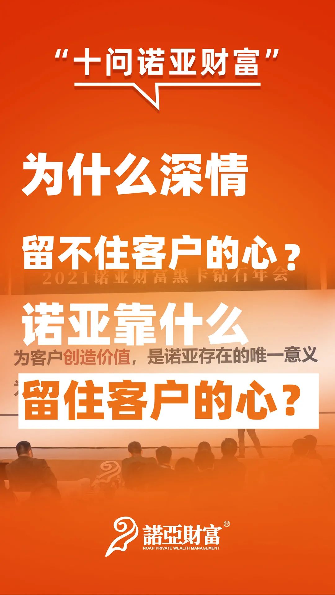 “我觉得你们诺亚的理财师有点佛性,不够积极主动,不够狼性”这是一位客户在诺亚钻石年会“高管面对面”环节的发言,他反馈若诺亚理财师更加积极争取他,他或许不会在别处踩雷。