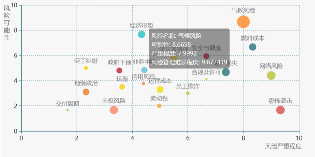 从中长期来看,世界范围内的政治冲突及逆全球化抬头升温趋势越累越来明显,来自于企业外部的地缘政治、产业环境、技术变革、法律法规和自然灾害的变化和风险也越来越大,这也对于企业做好包企业内部的供应链管理、网络安全、战略与资源、财务及保险管理等各方面基本功提出了更高的要求。为了实现资产的保值增值,满足企业发展和海外风险韧性的需求,对企业所面临的风险进行全方位画像,并对风险敞口进行量化分析,是企业保持和发展国际化业务的必经之路。