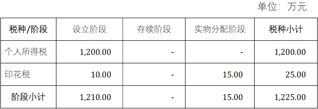 张先生以科技公司股权设立家族信托的整个过程中,涉及两次交易,经过简略计算,将会产生合计1,200余万元的税费。该案例中涉及的税费详见下表:
