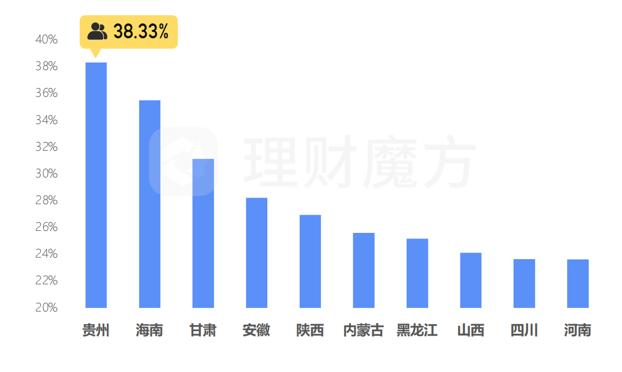 - 从区域理财人群规模增速来看,理财魔方调查数据显示,贵州以33%的投资者人数增速领跑全国。